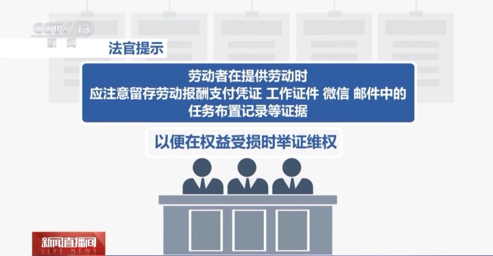 法官特别提示,劳动者在提供劳动时优配好油,应注意留存劳动报酬支付凭证、工作证件、微信、邮件中的任务布置记录等证据,以便在权益受损时举证维权。