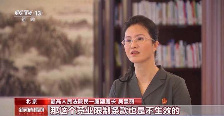 最高人民法院民一庭副庭长吴景丽:比如说公司与劳动者签订了竞业限制条款,但是劳动者比如说是一个保安,他完全不掌握公司的商业秘密,此时即使签订了竞业限制条款,这个竞业限制条款也是不生效的。