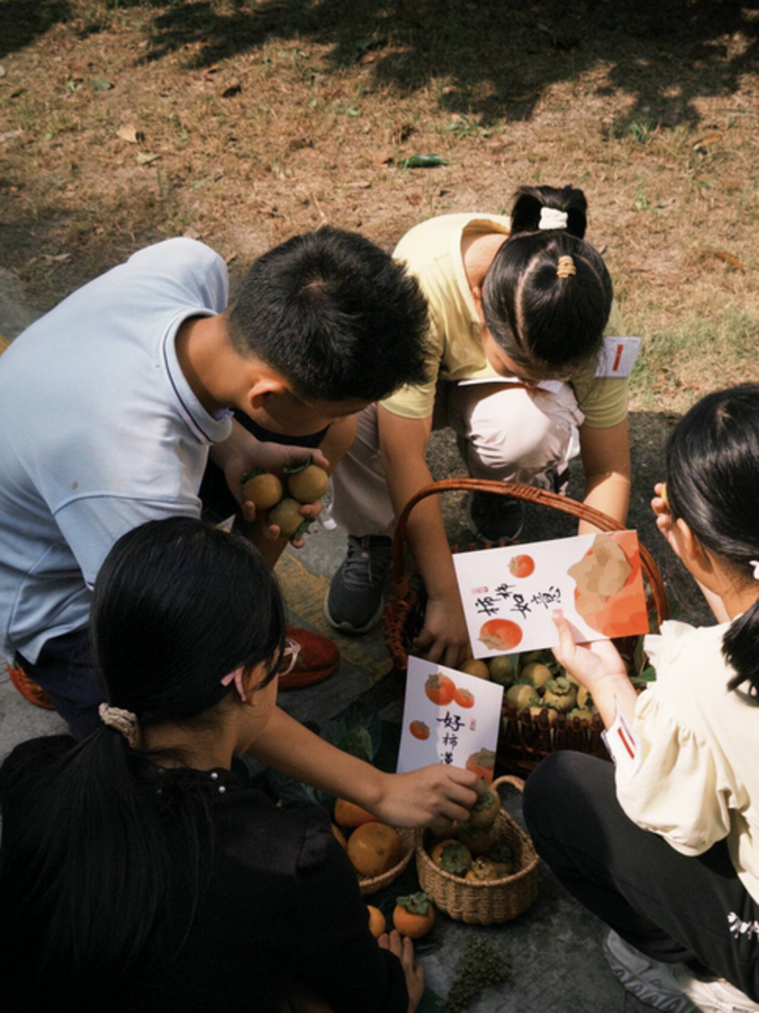 同学们围坐在一起,精心将柿子分装进精美的礼品盒里。他们还在每一份礼物上,系上了亲手书写绘制的“柿柿如意”祝福卡,每一笔每一画都承载着对老师们的感恩。