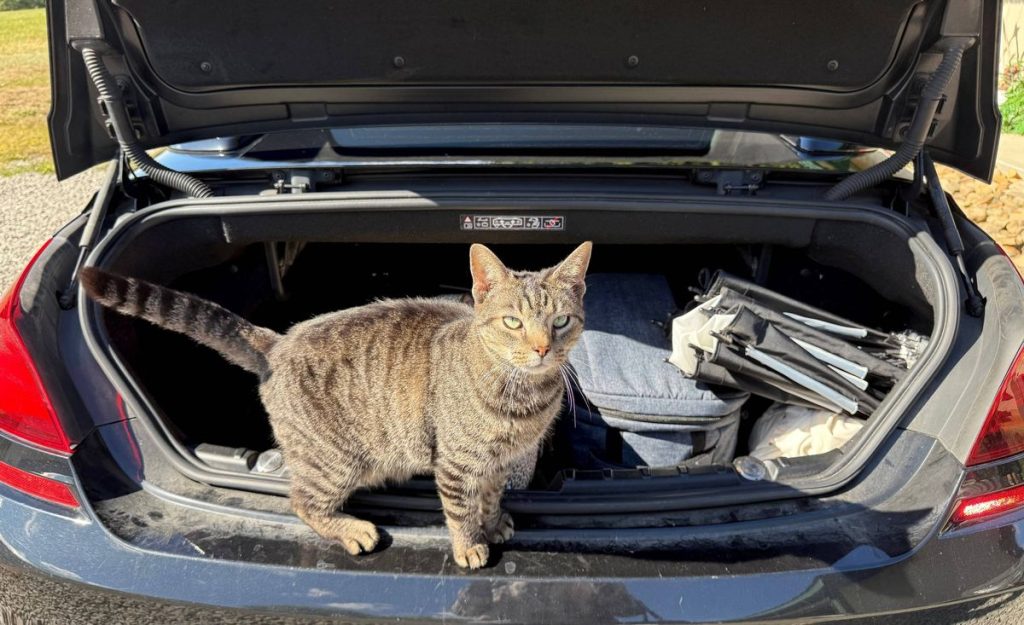 玛格丽特起初以为这只8岁的猫咪安全待在家中,直到在休息时看到它蜷缩在车顶行李架旁,才惊讶不已。她回忆,当时心里充满恐惧,担心猫咪在途中发生意外,但雷雷看起来却十分淡定。